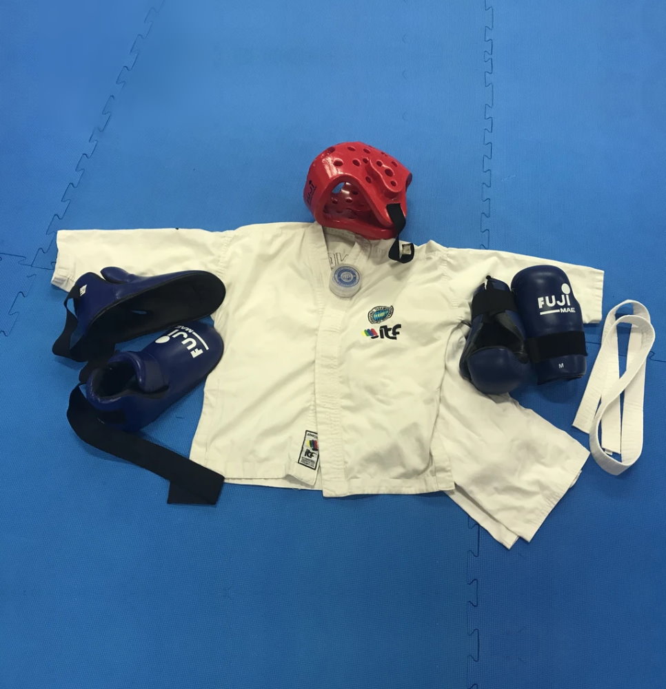 Dit starterspakket voor dames bestaat uit een dobok (Taekwon-Do pak), witte band, handschoenen, voetbeschermers, bitje en een helm. Ideaal om mee te beginnen.